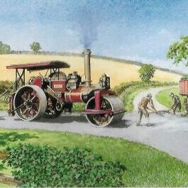 A delightful vintage steam roller greetings card. Our watercolour, fine art cards depict an old fashioned steam roller in a traditional, rural setting.
