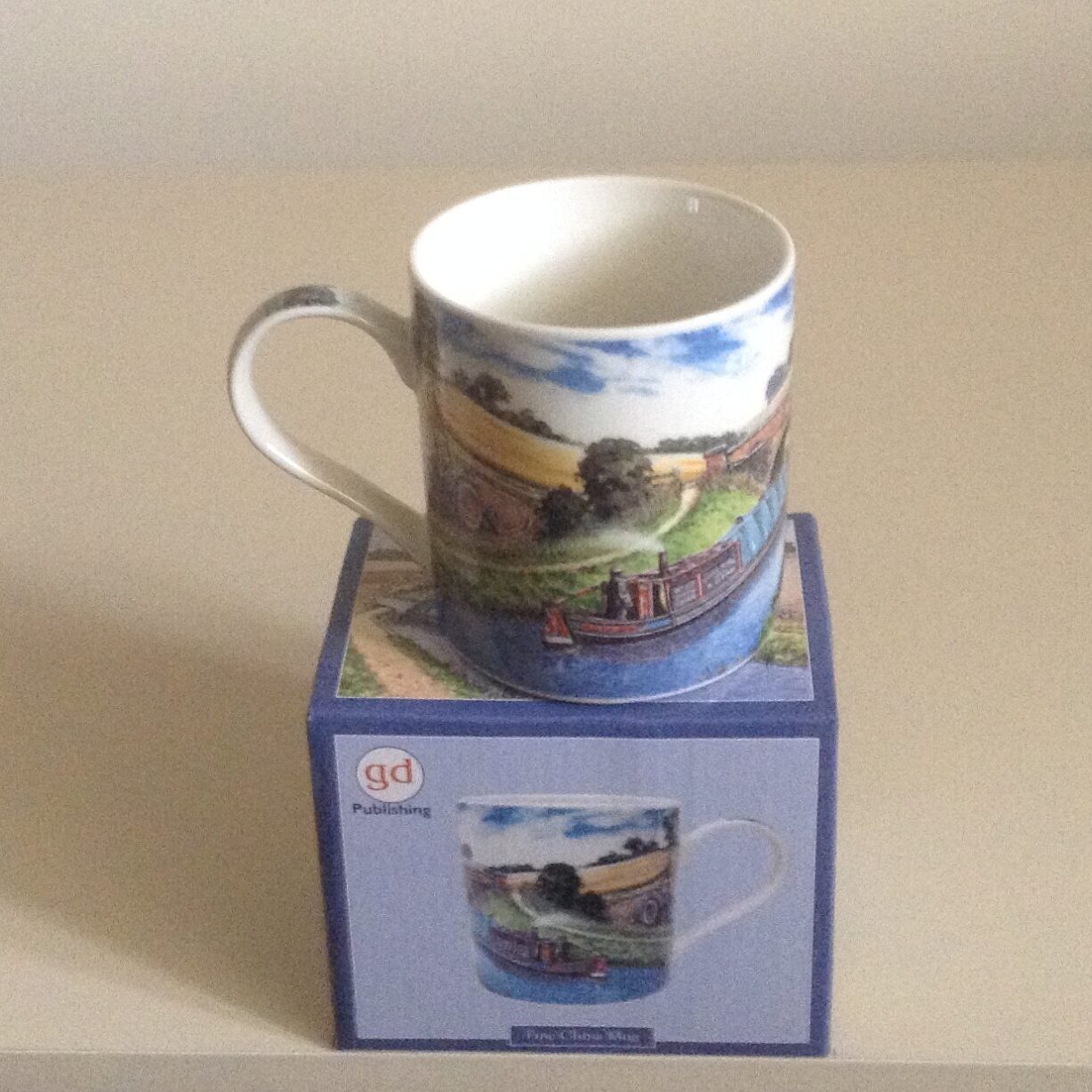 Gift Boxed Fine Bone China Mug, decorated on handle, same image whether left or right handed, 8.5cm tall, dishwasher and microwave safe