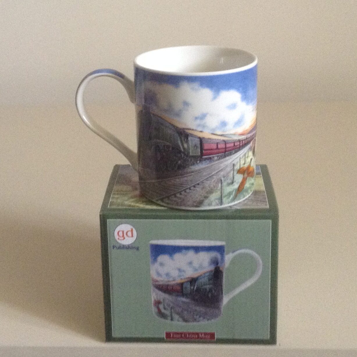 Gift Boxed Fine Bone China Mug, decorated on handle, same image whether left or right handed, 8.5cm tall, dishwasher and microwave safe